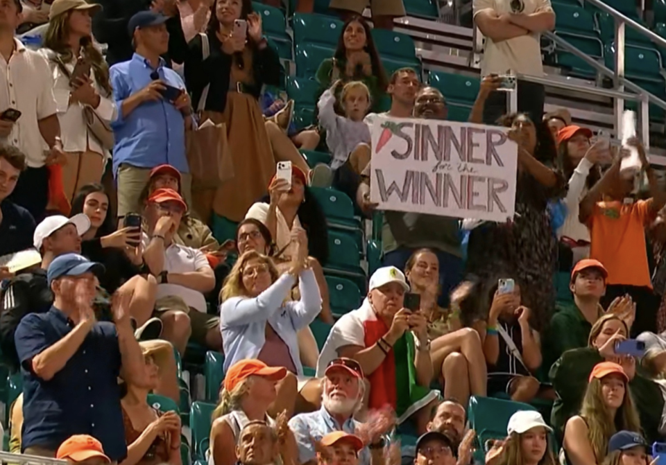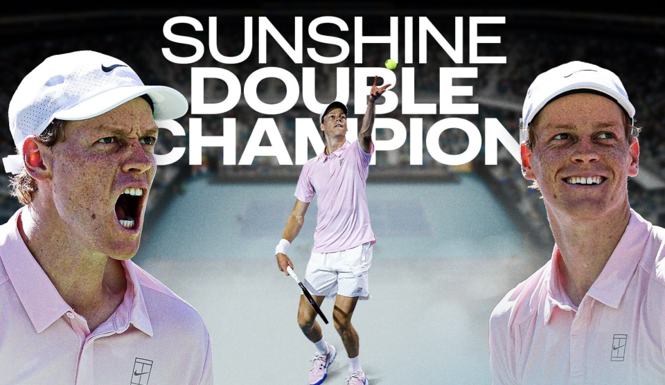 辛纳连续拿下了印第安维尔斯站和迈阿密站冠军,解锁了阳光双冠,成为了历史上第8位取得此成就的球员。不过,他是历史上第一个首位不输一盘实现阳光双冠的选手,无论性别。